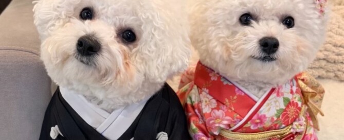 雪だるまのわたことけだまる こちらは鏡餅スタイル!お正月着物着ました 午年なので、馬の着ぐるみも♪ チャッピーがなんでも着せてくれます!笑 今年も、わたことけだまるをよろしくお願いします(o^^o)