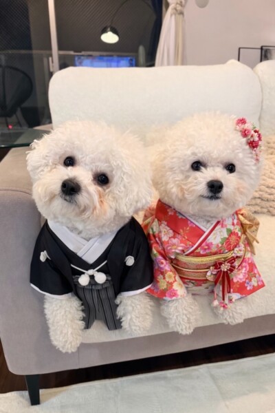 雪だるまのわたことけだまる こちらは鏡餅スタイル!お正月着物着ました 午年なので、馬の着ぐるみも♪ チャッピーがなんでも着せてくれます!笑 今年も、わたことけだまるをよろしくお願いします(o^^o)