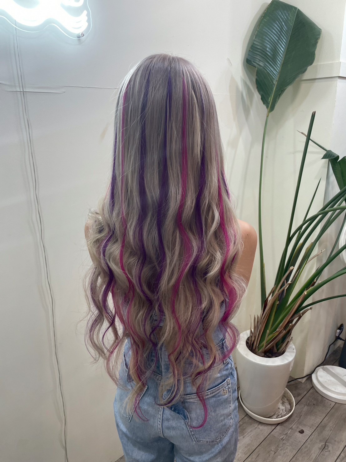 メニュー内容: | エクステ、ハイライト、ギャル、メッシュ、コギャル、ハイトーン、ブリーチ、ダブルカラー |